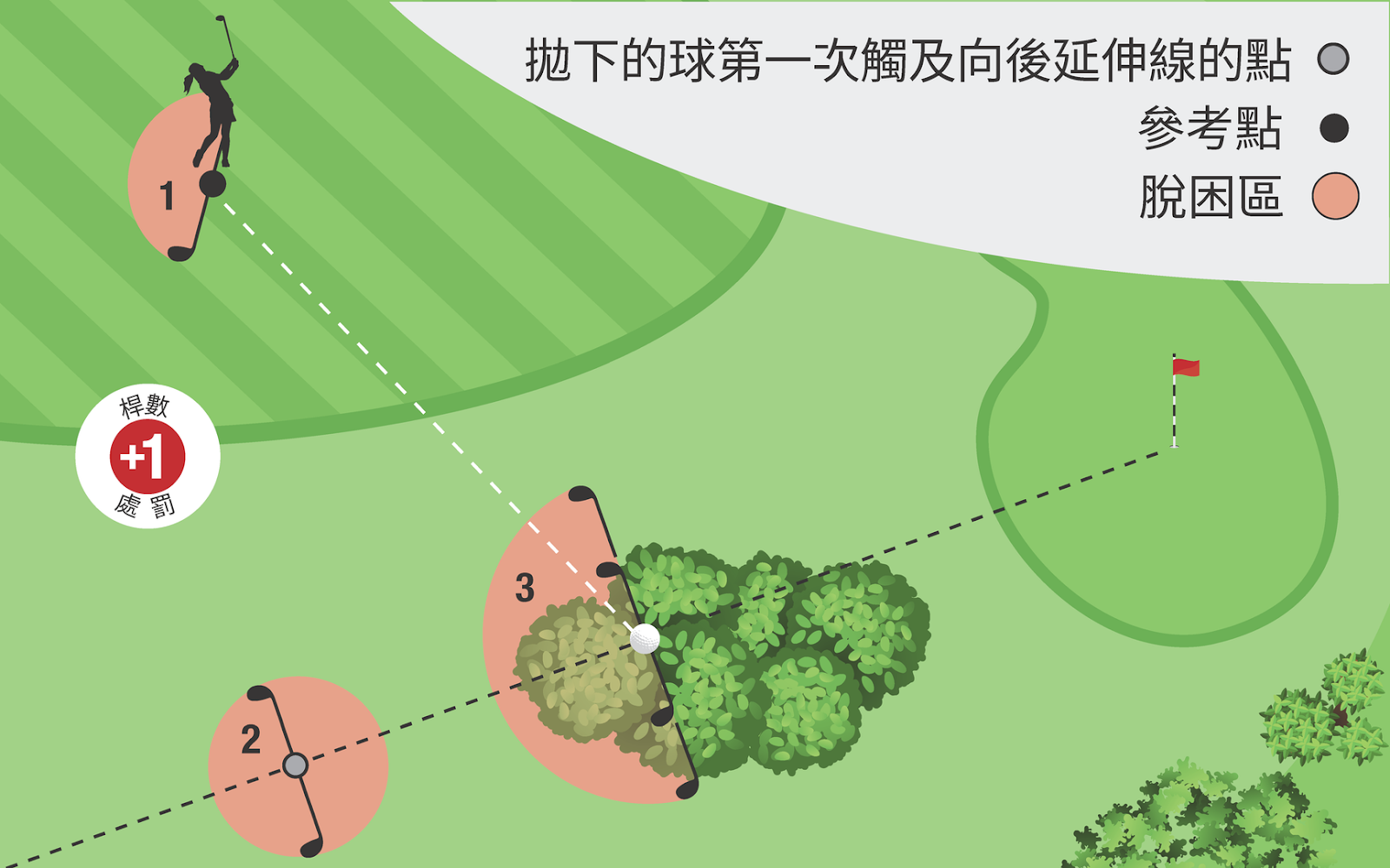 罰一桿,該球員可以採取桿數與距離之脫困。